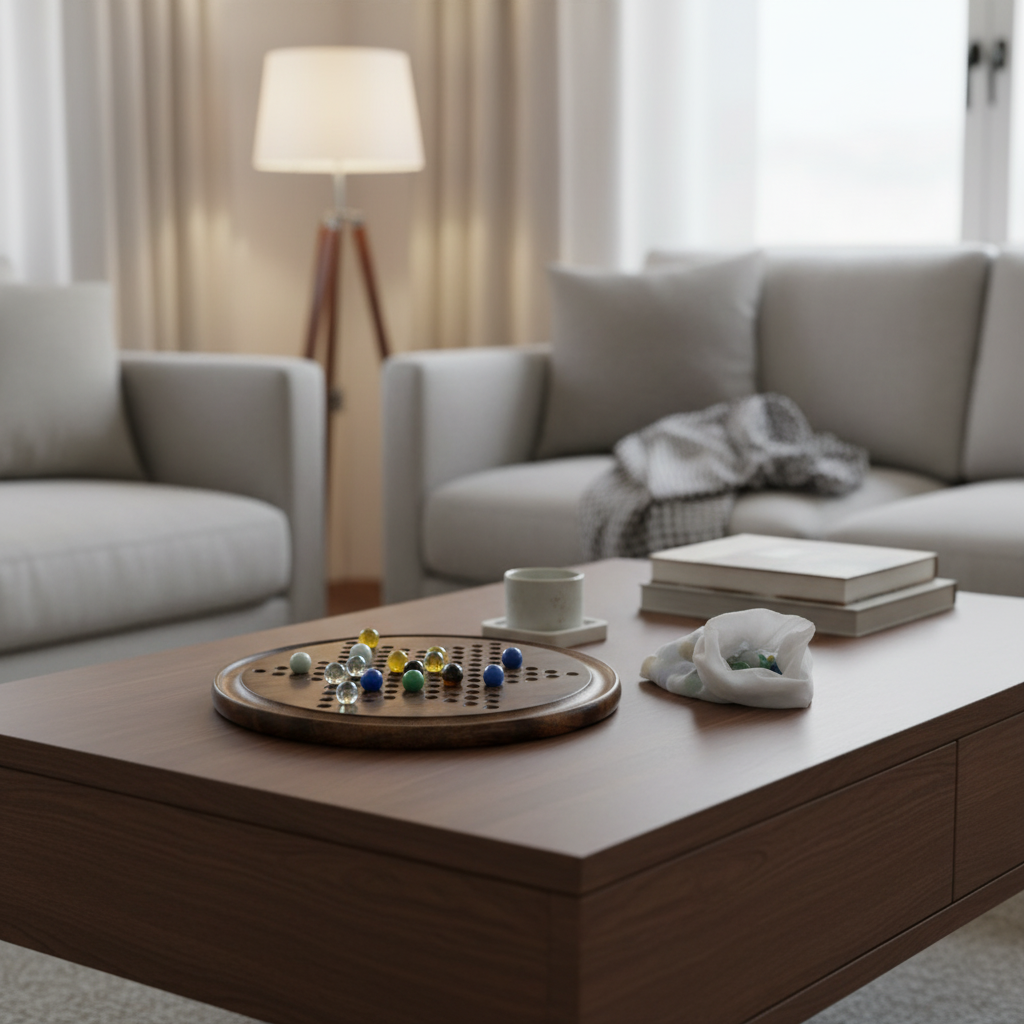 Spelet är designat för solitaire-spel, perfekt för att träna koncentration, strategi och problemlösning. Med sina kompakta mått 30 x 30 x 2 cm är det enkelt att förvara och ta med på resor, till stugan eller för spelstunder hemma.