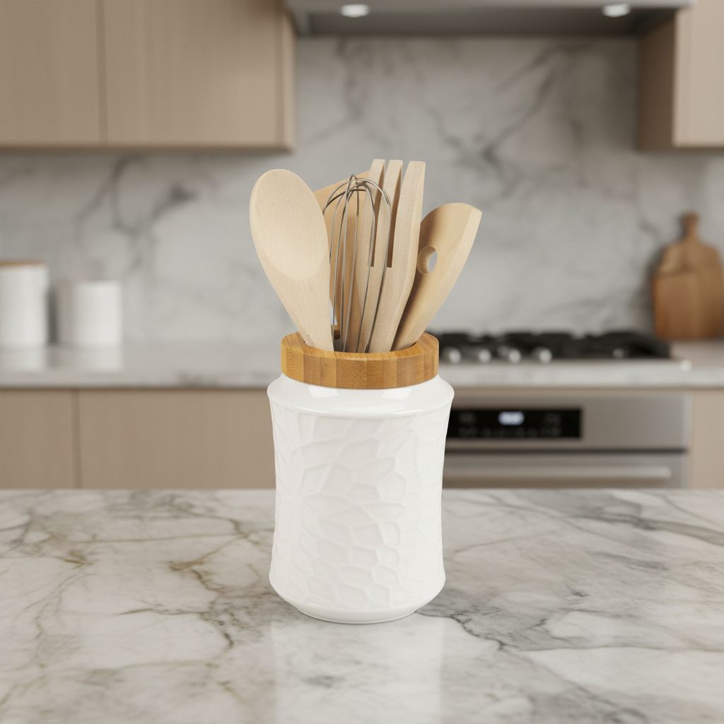 Köksredskapshållare Bambu & Porslin – 6 delar