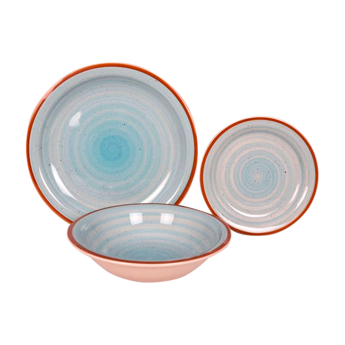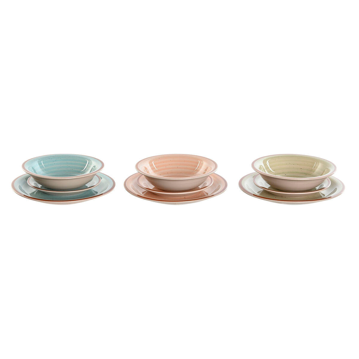 Servis i Stengods 18 delar (Blå, Grön, Rosa, Bärnsten)
