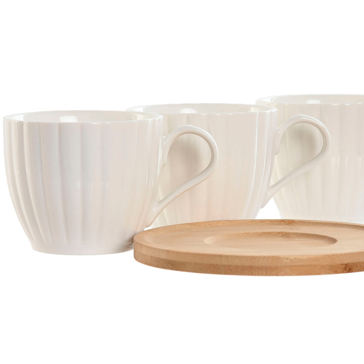 Uppgradera din fikastund med detta eleganta set med 6 koppar och fat från Home ESPRIT. Kombinationen av vit porslin och naturlig bambu skapar en stilren och tidlös design som passar lika bra till vardags som till fest.