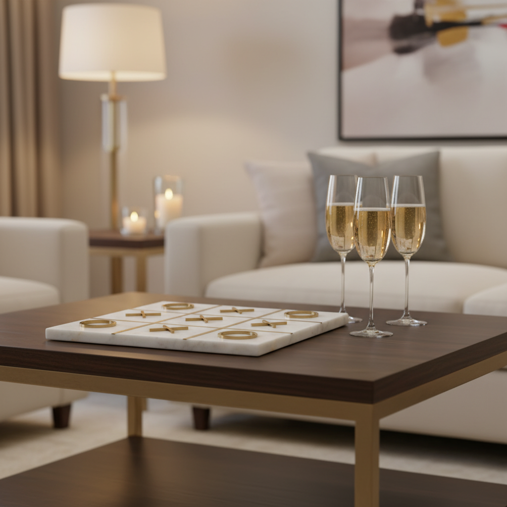 Ge ditt hem en elegant touch och njut av ett tidlöst spel med Three-in-a-Row Game Home ESPRIT. Det klassiska tre-i-rad-spelet får här en modern och stilfull tolkning med en kombination av vit sten och gyllene detaljer i rostfritt stål, vilket gör spelet lika dekorativt som underhållande.